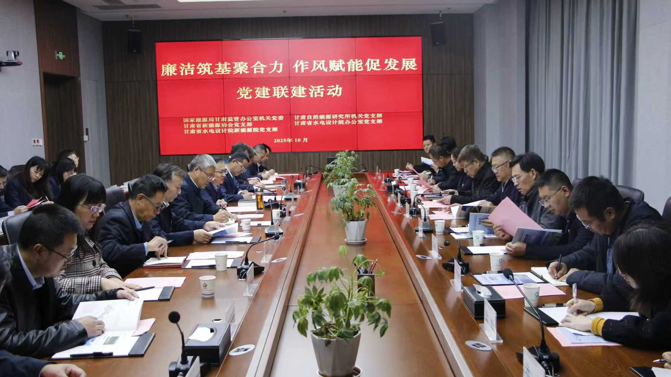 10月20日,甘肃能源监管办为深化“作风建设提升年”行动,联合甘肃自然能源研究所、甘肃省水电设计院、甘肃省新能源协会等单位基层党组织开展“廉洁筑基聚合力 作风赋能促发展”党建联建活动,分三个环节,通过参观学习、专题讲座、交流研讨等形式,推动党务业务深度融合、作风能力共同提升。