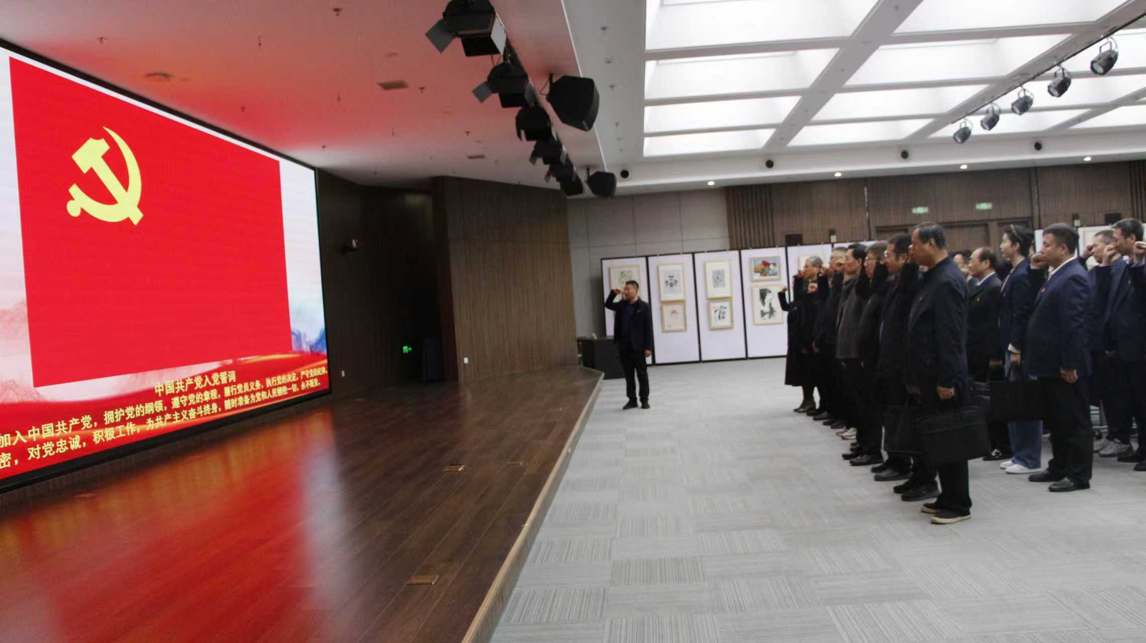 在“清风廉动,筑牢思想防线”环节,党员干部共同走进廉洁文化作品展区,认真欣赏紧扣“廉洁”“作风”主题的书画、摄影、手工和动画作品,仔细聆听讲解,不时驻足观摩,相互交流感悟,在感受廉政文化深厚底蕴的同时,进一步强化了廉洁自律的意识。参观结束后,全体党员面向鲜红党旗,举起右拳庄严宣誓,重温入党时的铮铮誓言。