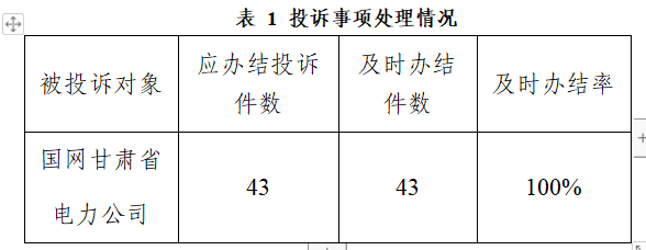 甘肃能源企业应在12月份办结投诉43件,全部在10个工作日内办结,及时办结率100%。